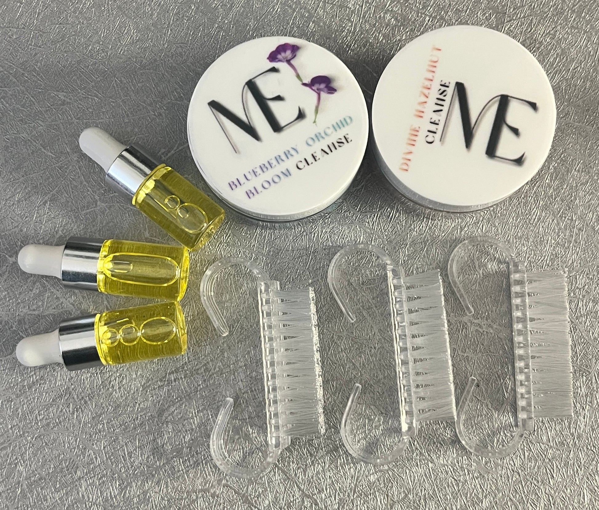 Includes your choice of Divine Hazel or Blueberry Orchid, plus tools to support clean, consistent use.